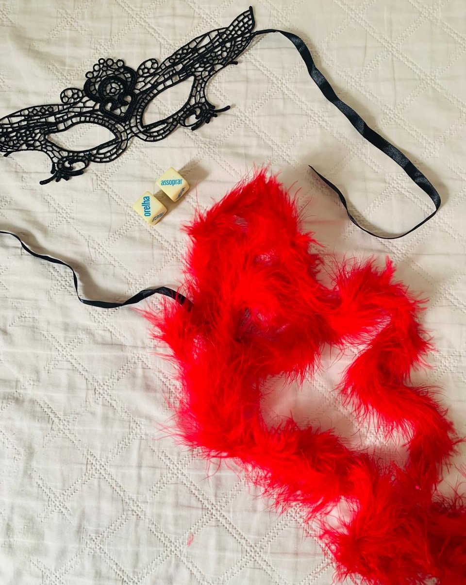 Estamos fechados, entre luzes vermelhas, balões e manequins despidos. No ar o som é de batida, também taças e corpos arrastando o mármore. Corpos se aproximam, mas não colam um no outro. A pele está exposta, pernas de fora até metade das coxas. Olhos vestem máscara cintilante-cetim que não veio do Carnaval.